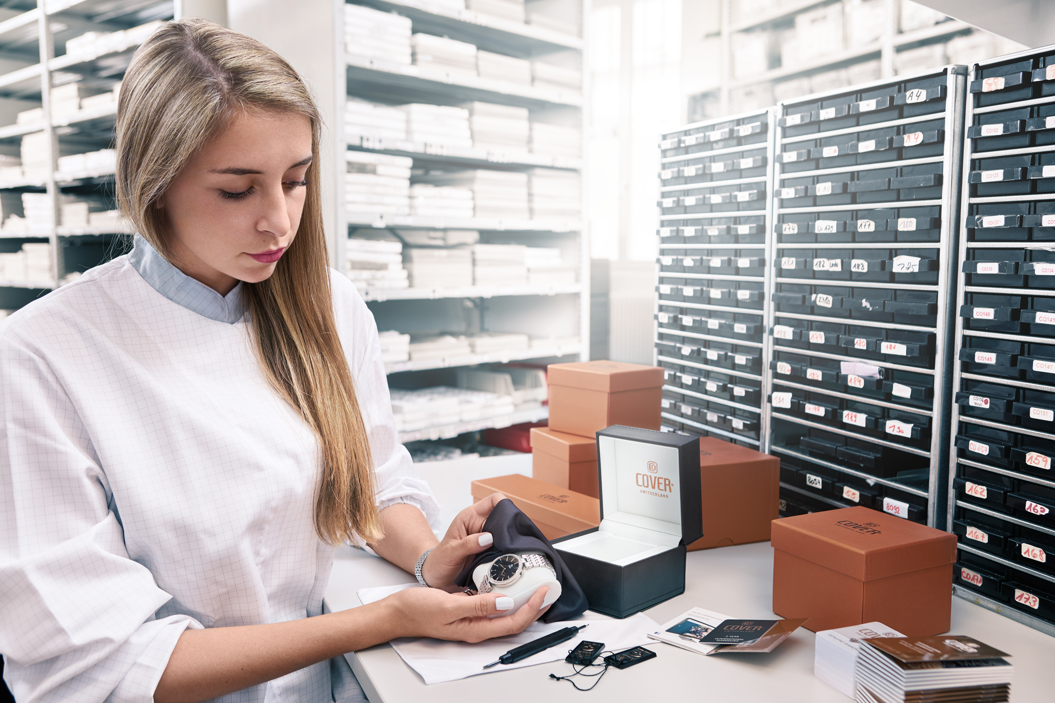 В наших ателье безукоризненная работа мастеров лежит в основе часового производства. Часовые мастера COVER прошли специальную подготовку и являются профессионалами в своей области. Каждые часы собираются, проходят контроль качества и упаковывается вручную. Так COVER гарантирует качество часов Swiss Made.
